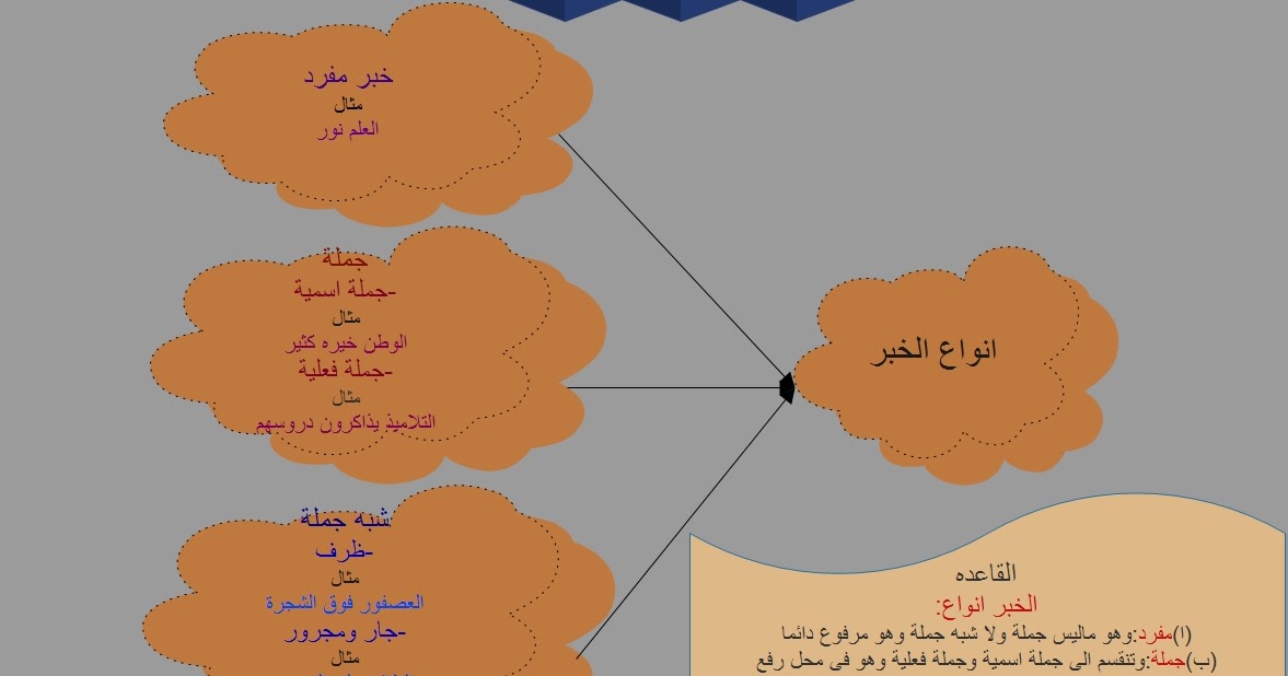 خريطة ذهنية انواع الخبر. المدير موجود جملة اسمية. ب ع س ى ح ر ى اخ ل و ل ق وتسمى أفعال الرجاء. لإنشاء خريطة ذهنية متوازنة اج عل الأفكار الفرعية على جانبي الفكرة الرئيسية متساوية. شرح ملخص للجملة الإسمية والجملة الفعلية وأنواع الخبر بطريقة الخريطة الذهنية.