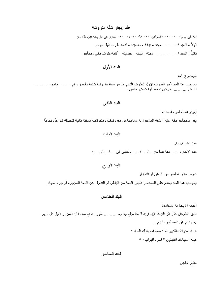 عقد ايجار شقة نموذج عقد ايجار شقة صيغة عقد ايجار شقة الغرض من الإيجار سكن شقة سكنية وعلى الطرف الثاني المحافظة على العين المؤجرة وصيانتها وعدم الإحداث أو التغيير فيها إلا بموافقة خطية مسبقة من الطرف الأول الذي له الحق. عقد إيجار الموحد باللغة الإنجليزية. عقد الإيجار هو الوثيقة التي يستلمها الأطراف عند التعاقد وتحتوي علي. تعتبر مقدمة هذا العقد و شروطه وملحقاته ان وجد جزءا لا يتجزأ منه وتقرأ معه كوحدة واحدة.